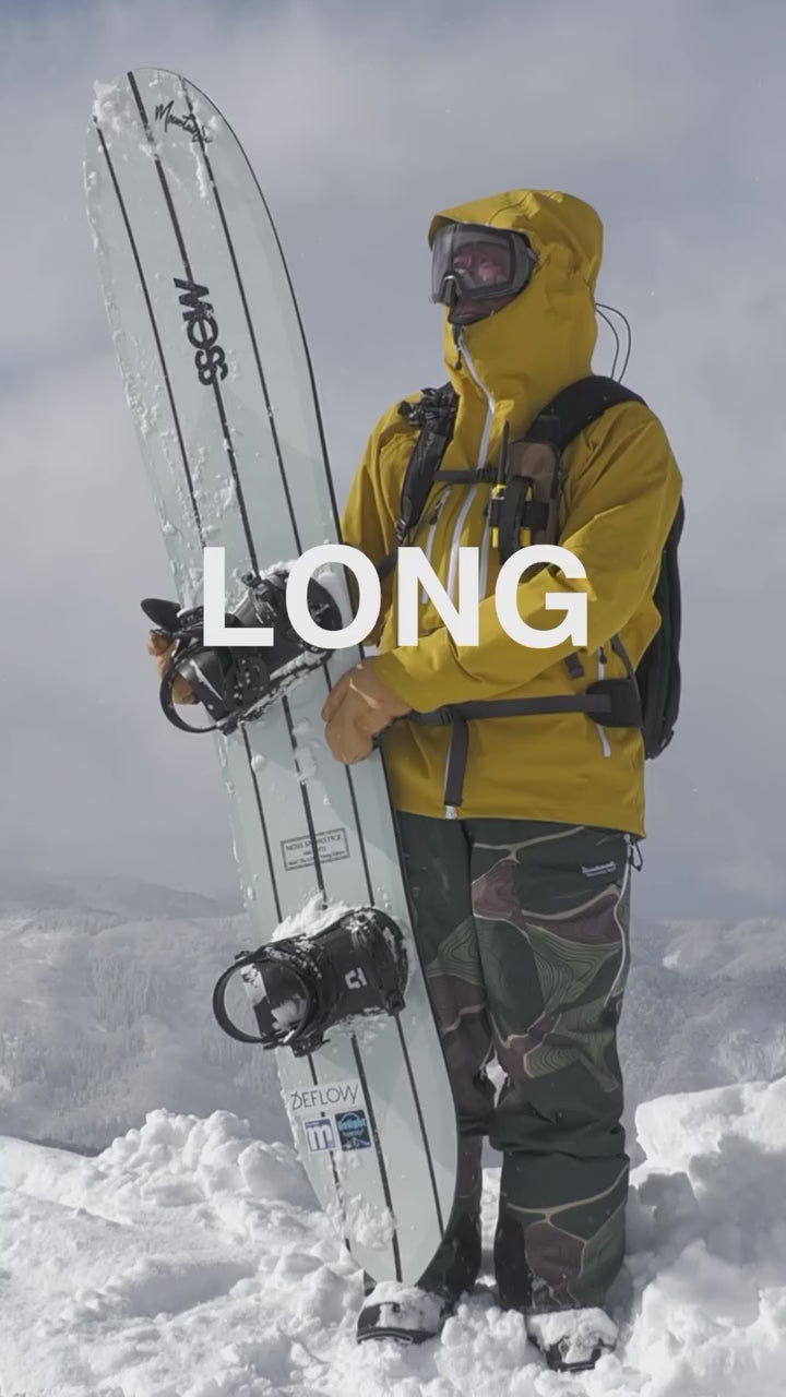 Inspired by the elegance of longboard surfing, the Long was born. Featuring our innovative Step Back Rocker system, this 184 cm board delivers exceptional agility, responding intuitively to your every move and allowing for authentic surf-like back foot control. The pintail-tapered outline ensures catch-free maneuverability and effortless float, while the large sidecut radius provides those graceful, elongated turns like no other. Whether you're plowing through deep powder or cruising down wide-open groomers, the Long transforms the entire mountain into your perfect wave playground.